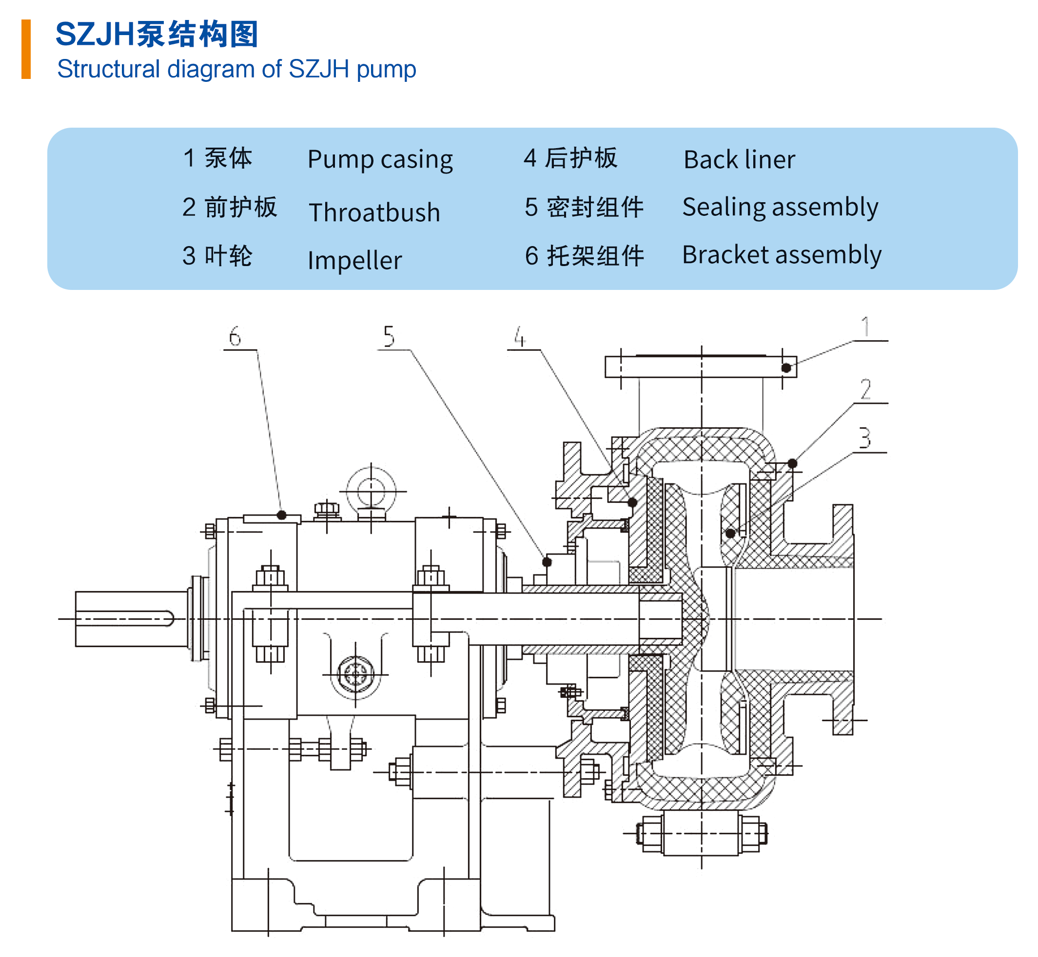 Feeding pump for cyclone separator under the mill, tailings conveying pump, flotation pump, concentrate pump |